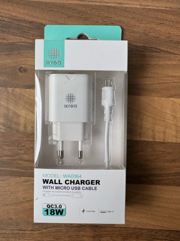 Conéctate y recarga con potencia y confianza. El IKrea WA0164 con Quick Charge 3.0 acelera tu carga con un cable micro USB incluido y diseño compacto para llevar donde sea.